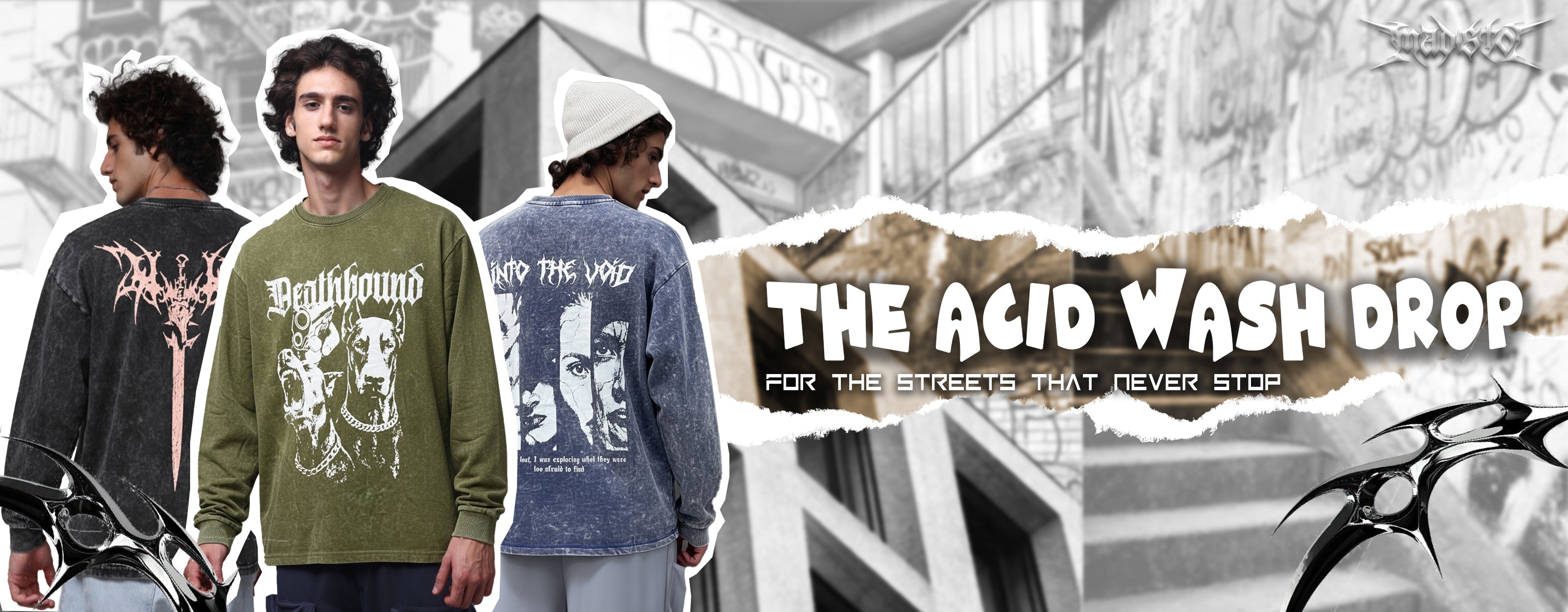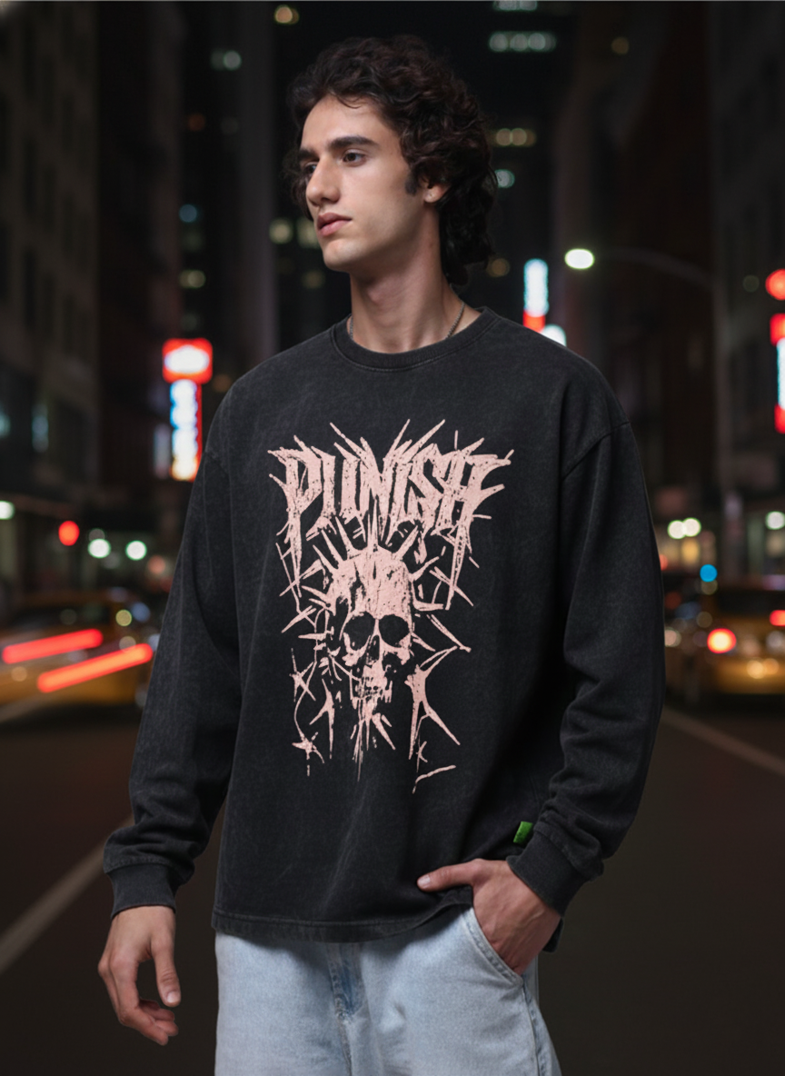Men's Acidwashed Full Sleeves Streetwear T-shirt