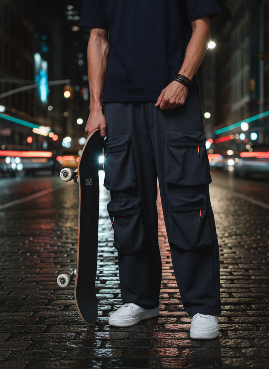 Men's Loose Fit Dark Grey Side Tape TrackPants