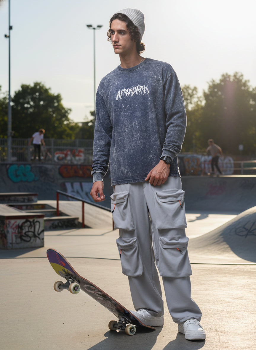 Men's Acidwashed Full Sleeves Streetwear T-shirt